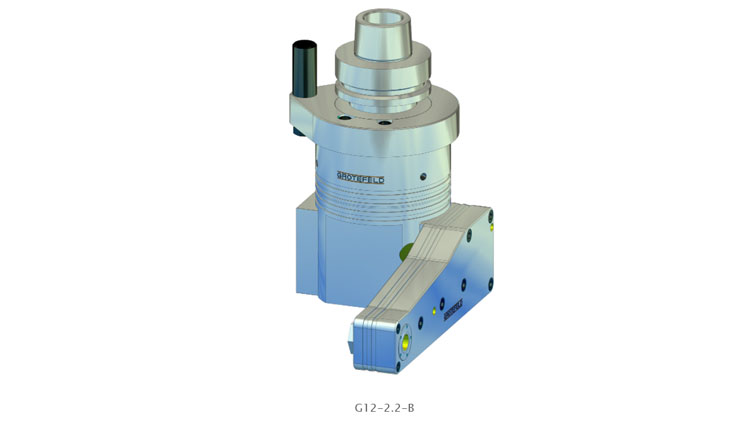 G12 系列的角頭特別適用于加工零件孔。他們有一個非常短的連續加工主軸,帶有兩個刀架。這意味著兩個刀架之一的主軸旋轉方向與驅動旋轉方向相同,另一個刀架的主軸旋轉方向與驅動方向相反。驅動速度以 1:1.93 的比率傳輸到刀架。連續運行時最高主軸轉速可達 10,000 rpm。