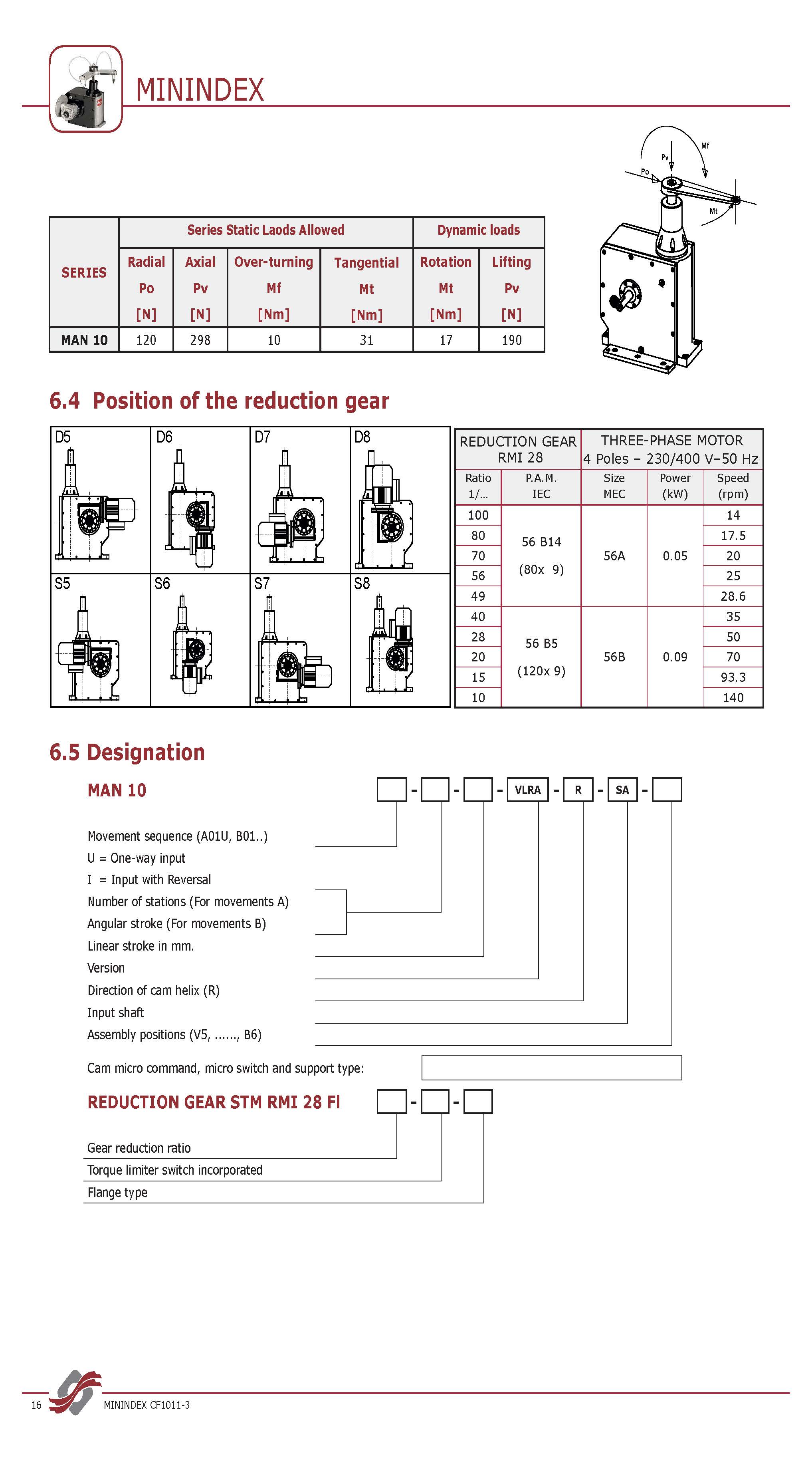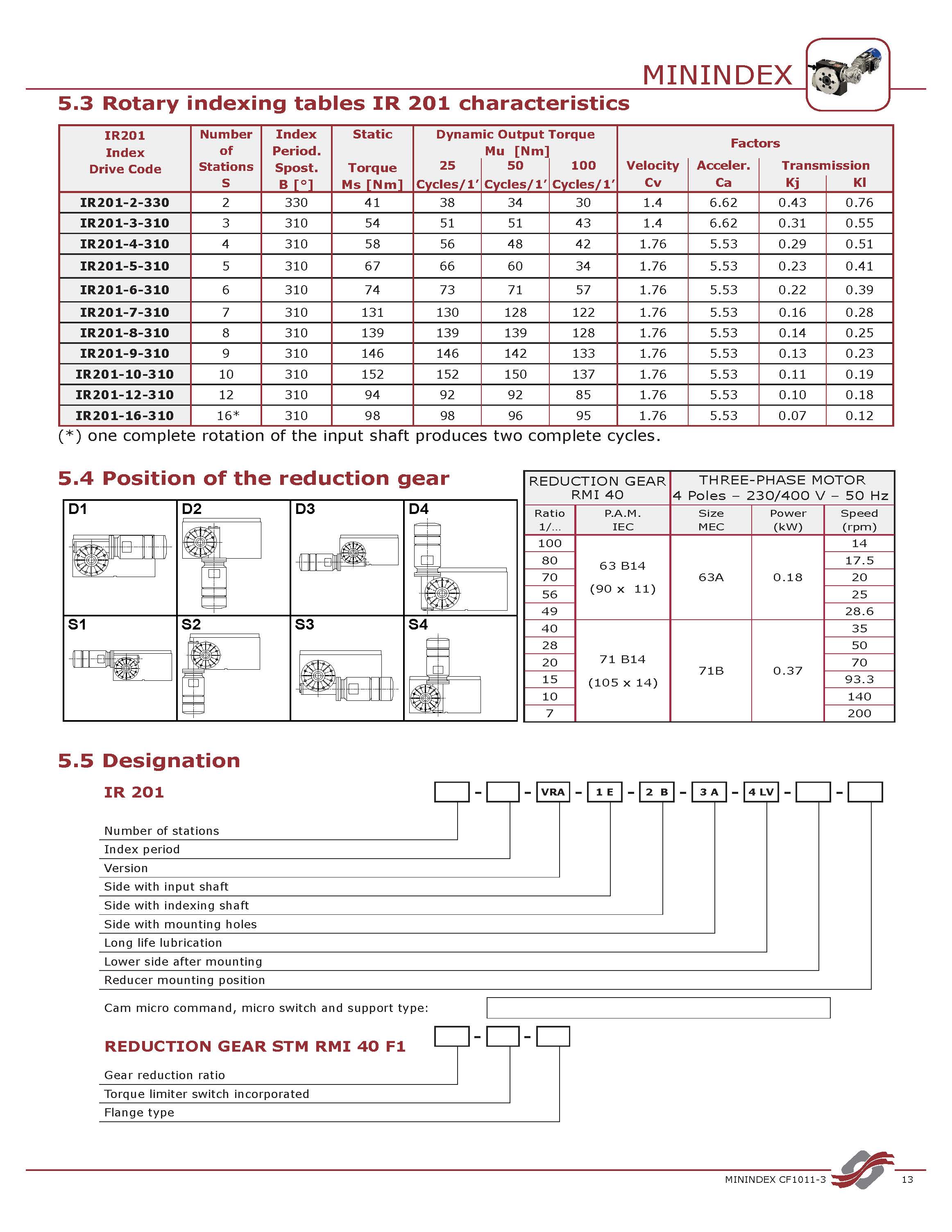 軸心距(mm):40 - 65 - 80 - 105 - 130 - 165 - 200 - 250 - 315